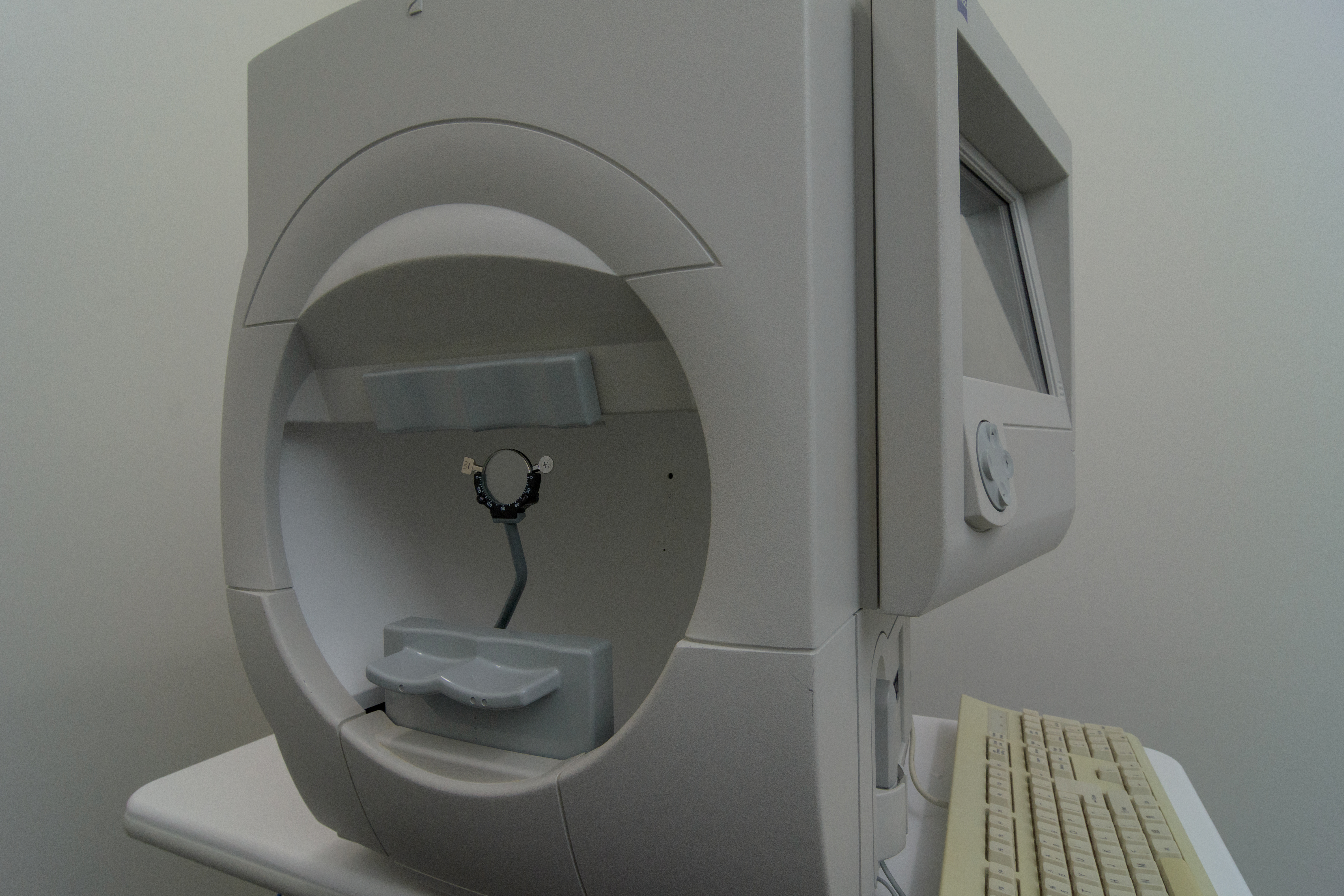 A test to detect changes in your central and peripheral vision. Conditions such as glaucoma, stroke, tumours and other optic nerve abnormalities can be detected and monitored. While looking at a central fixation (dot), a series of lights will flash around the central point. The test will take approximately 10-20 minutes and results will be reviewed by the optometrist afterwards.